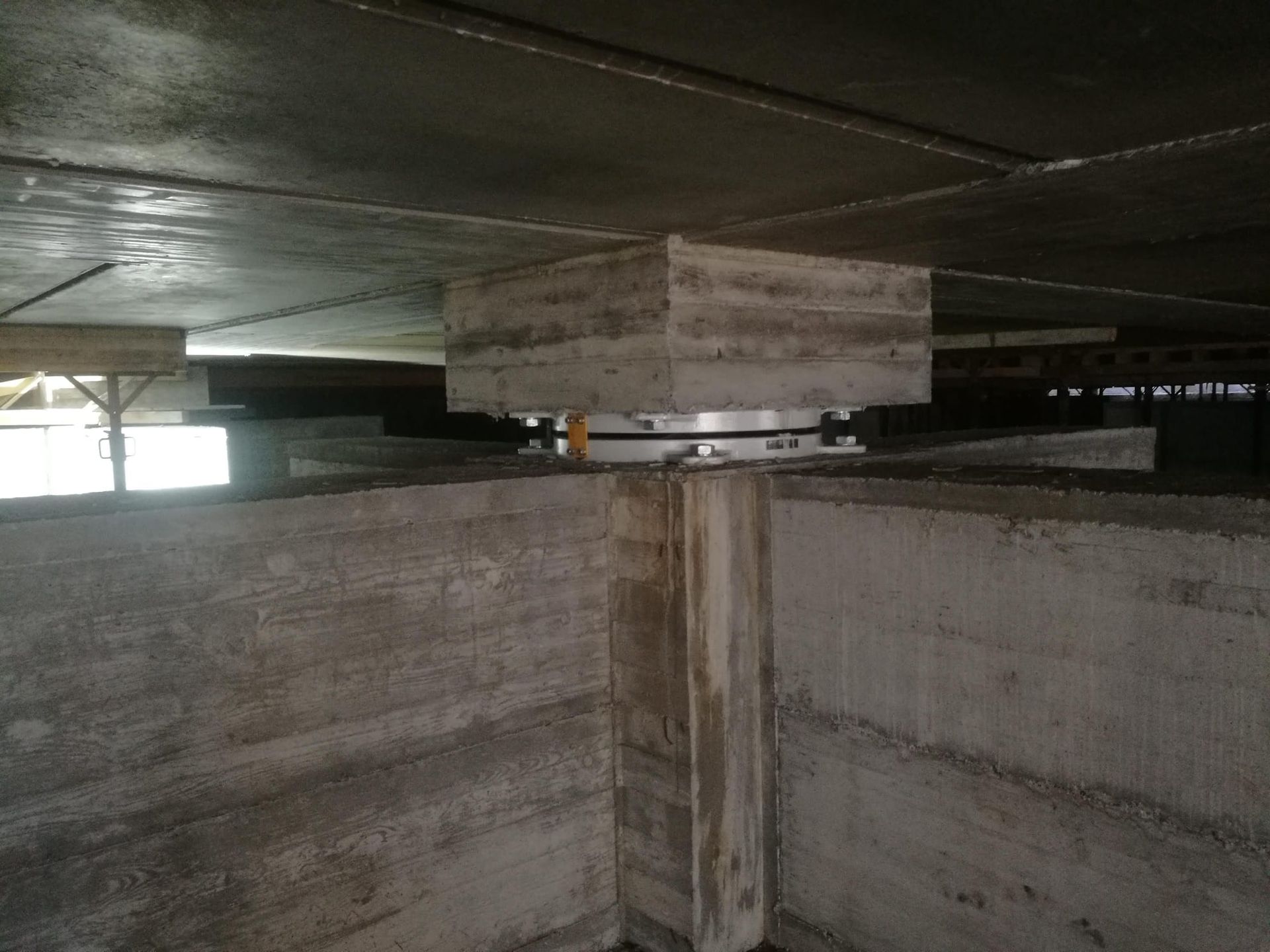 Il posizionamento di detti dispositivi ha consentito di rendere più snella la struttura in elevazione ai piani superiori, riducendo così i vincoli che la maglia strutturale induce sulla distribuzione planimetrica.